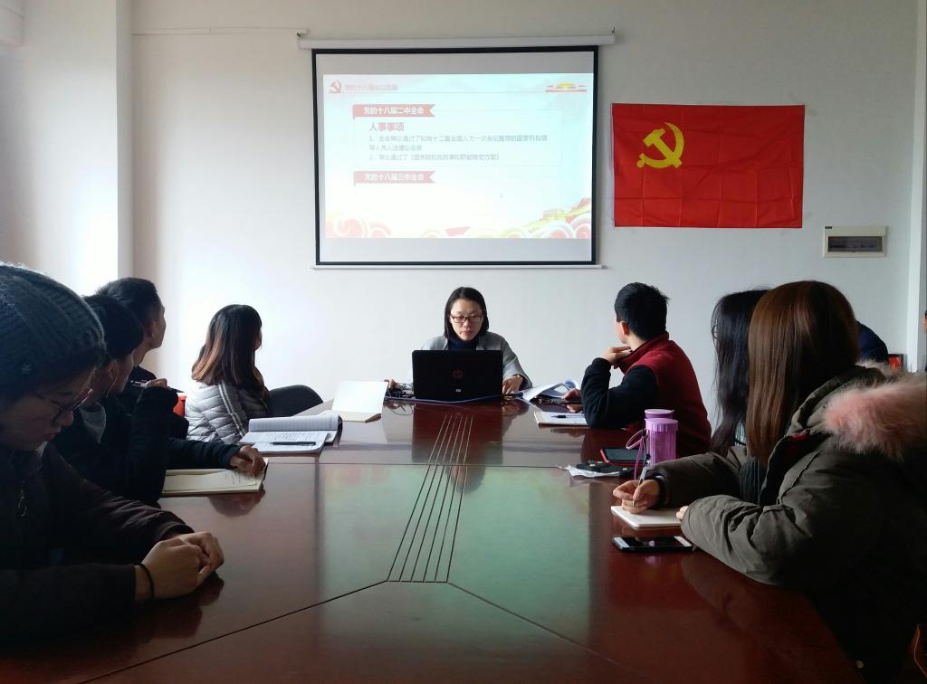 刘颖洁老师从中国共产党第十九次全国代表大会简介及重要意义、从党的十八届一中全会到七中全会重点回顾、习近平总书记党的十九大报告内容精解 、做合格党员 不忘初心 永远跟党走这四个部分进行阐述和讲解,其中,刘老师以 “新时代,两个一百年,五位一体、四个全面”等几个关键词给大家详细解读了党的十九大精神报告,号召大家要学会回首过去、展望未来,结合自己的亲身体会,去发现生活中的种种变化。本次会议让与会人员深刻地认识到了在党的正确领导下,社会变得更和谐,人民生活更幸福,生态环境更美丽。