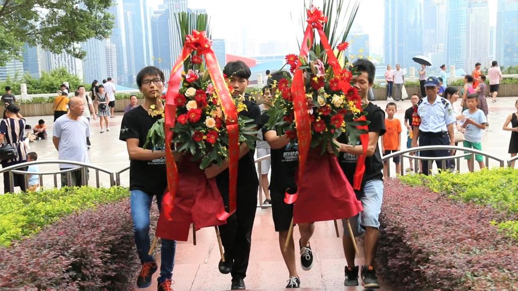 8月4日上午,在深圳参加2017年全国大学生机器人比赛社会实践团队的师生党员、积极分子来到深圳莲花山公园,向邓小平铜像敬献花篮,深切缅怀伟人的丰功伟绩和崇高风范。