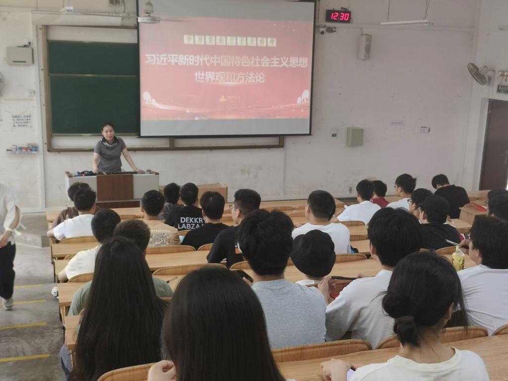 李海侠从世界观方法论的“实践依据”、“科学内涵”、“丰富发展”三个方面为同学们作了深入细致的讲解。她指出,党的二十大报告回顾过去五年的工作,用了两个关键词:极不寻常、极不平凡,深刻总结新时代十年的伟大变革,主要是“三件大事”、“三个历史性胜利”、“十六个方面成就”,在党史、新中国史、改革开放史、社会主义发展史、中华民族发展史上具有里程碑意义。可以说,这为我们学习领会习近平新时代中国特色社会主义思想的世界观、方法论提供了非常重要的注解,也说明习近平新时代中国特色社会主义思想在不断走向成熟,世界观、方法论越来越彰显。她指出,中国特色社会主义理论体系归根到底是马克思主义理论为指导的,是把这些基本理论同中国具体实际相结合的结果,马克思主义就是我们共产党人的“真经”,坚持和发展马克思主义,必须同中华优秀传统文化相结合。党课最后,李海侠副院长总结到,我们要准确把握时代大势,勇于站在人类发展前沿,聆听人民心声,回应现实需要,坚持解放思想,实事求是、守正创新,坚持用马克思主之“矢”去射新时代中国之“的”。同时,作为新时代的青年大学生,我们也要把世界观方法论运用到学习与生活中,以此解决实际问题,保持学习的热情与激情,争取为我们国家作出力所能及的贡献。