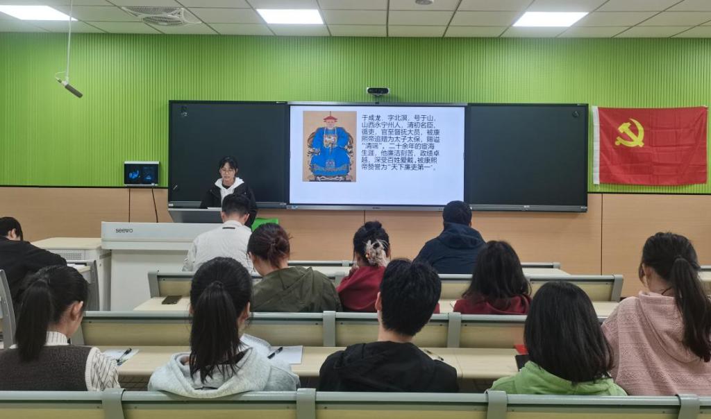 随后,支部党员代表李施施、覃艳儿、刘诗涵进行廉洁故事分享,讲述刘少奇、苏静、于成龙等优秀先辈的廉洁事迹,传播先辈的廉洁价值理念,勉励党员同志学习优秀人物艰苦奋斗,公而忘私的崇高品质。