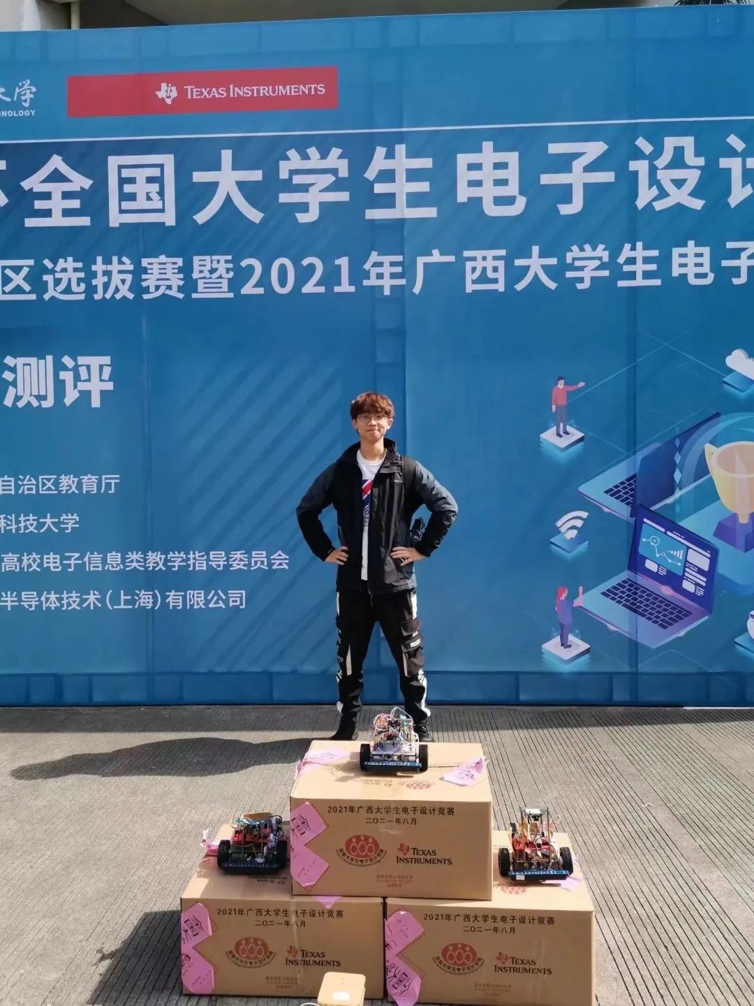 学长说:我是一个争强好胜的人,从大一开始加入学院的实验室,学习专业知识,参与学科竞赛。先后参与大学生计算机设计大赛、全国电子设计竞赛、大学生机械设计与创新大赛等等,至今已获得国家级奖项8项、自治区级奖项20余项。